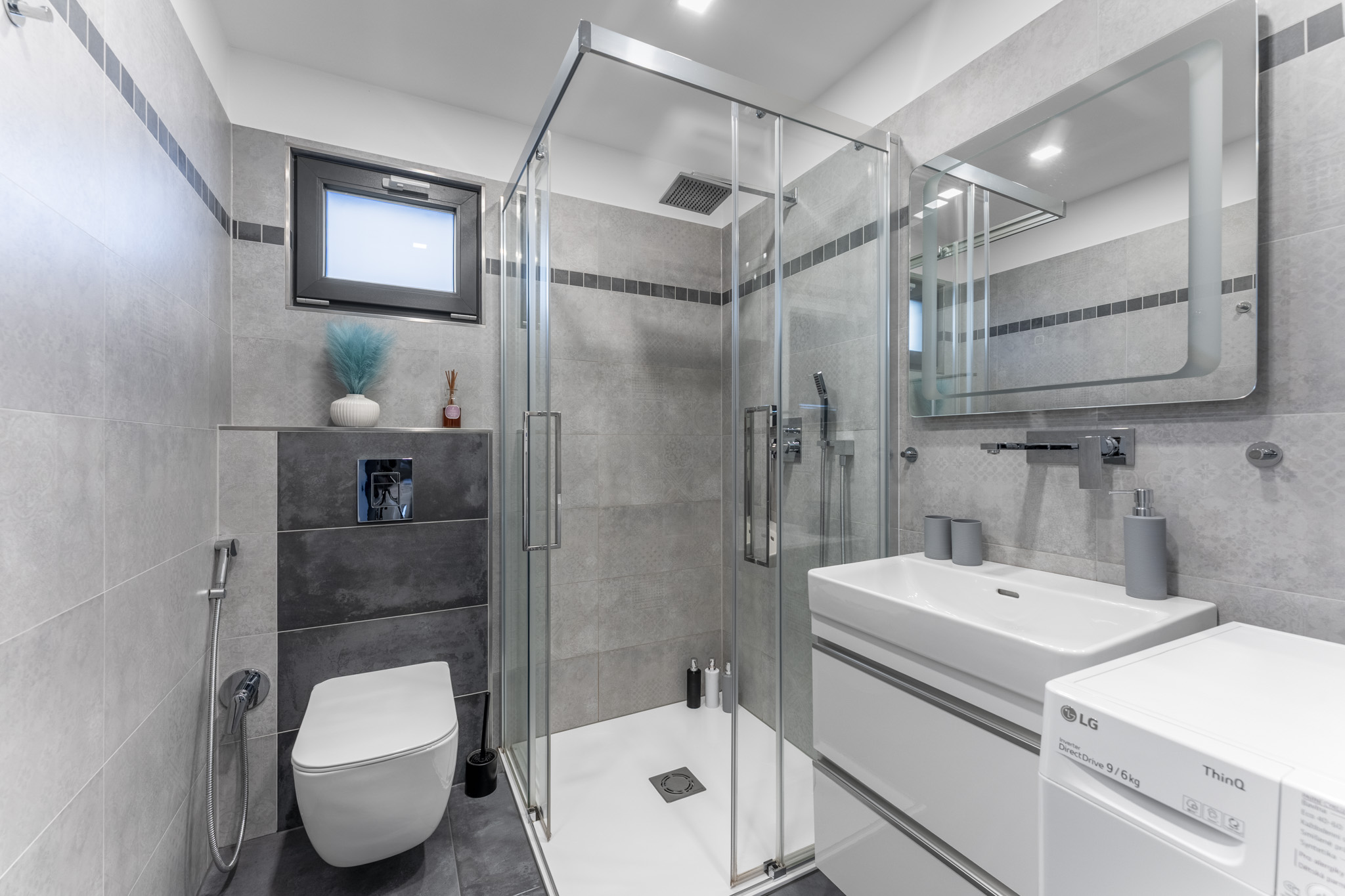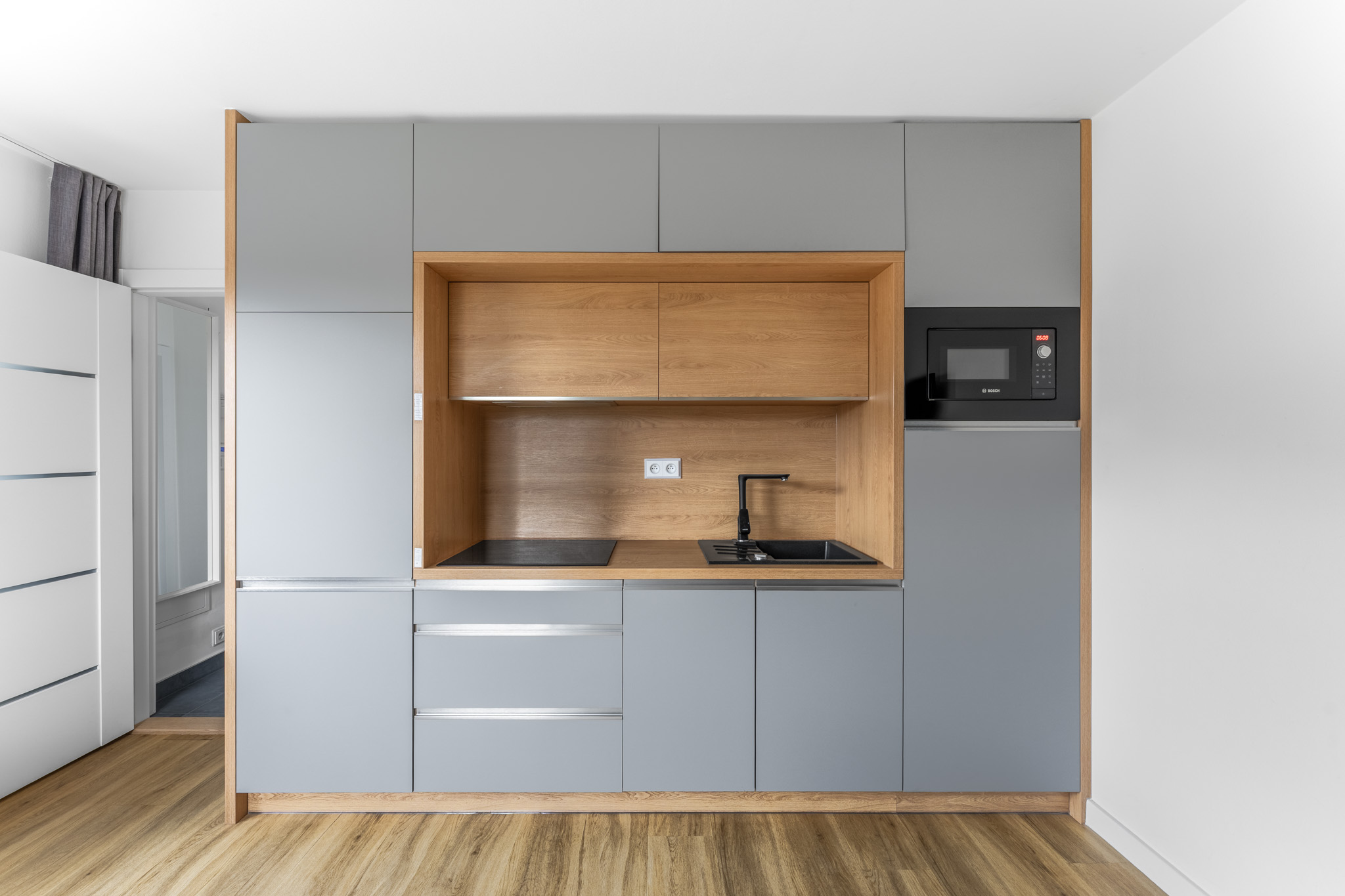 Prostorná moderní kuchyně s velkorysou integrovanou komorou nadchne jak milovníky vaření, tak i ty, kteří ocení praktičnost a promyšlené úložné prostory. Hlavní kuchyňská část je orientována směrem do obývacího pokoje a dále nabízí příjemný průhled do zahrady. Trendy barevná koncepce plynule navazuje na design hlavní obytné místnosti a vytváří vizuálně jednotný celek.