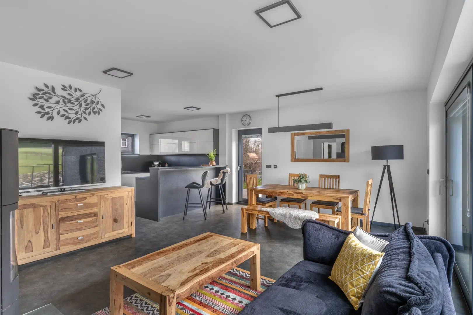 Obytná část s kuchyní je běžný pojem v realitních popisech, ale u této nemovitost dostává jiný rozměr a skutečně se odlišuje od ostatních nemovitostí. Pohled do přírody, který poskytuje nekonečné soukromí a klid vás nadchne. Poslední řada domů znamená, že váš výhled zůstane nezměněný, pouze příroda vám občas ukáže svou jinou tvář.