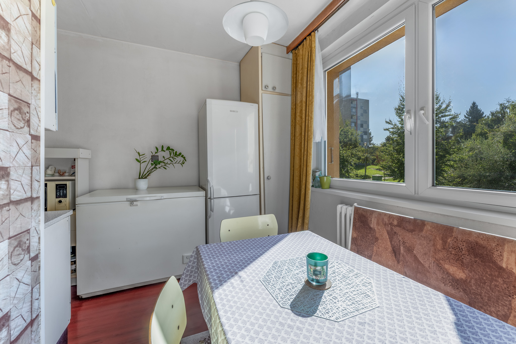 Byt 2+1 (62,13 m²) s lodžií (3,52 m²) v klidném prostředí plném zeleně nabízí příjemné bydlení s možností úprav dle vlastních představ. Nachází se v revitalizovaném panelovém domě, jehož stav a umístění poskytují pohodlné zázemí a dostatek soukromí. Velkorysé rozestupy okolních domů přinášejí dostatek denního světla a příjemný výhled do zeleně.